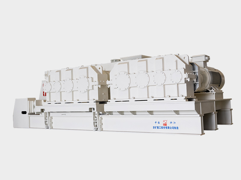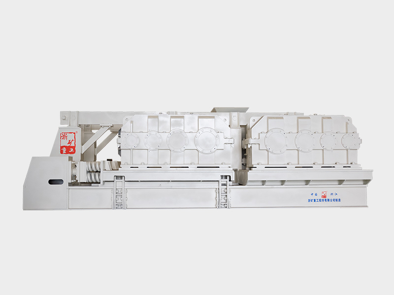 該系列對輥機(jī)主要由輥輪總成、機(jī)架總成、壓緊和調(diào)節(jié)裝置以及驅(qū)動傳動裝置等部分組成。