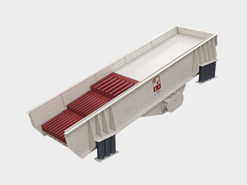1、采用雙偏心軸激振器的結(jié)構(gòu),保證設(shè)備能承受大塊物料下落的沖擊,具有運(yùn)行穩(wěn)定、給料能力大的特點(diǎn);