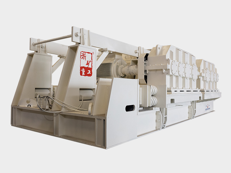 該系列對輥機(jī)主要由輥輪總成、機(jī)架總成、壓緊和調(diào)節(jié)裝置以及驅(qū)動傳動裝置等部分組成。